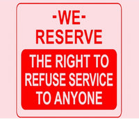 We reserve the right to refuse service to anyone, including those who exhibit disrespect towards our teammates, fail to follow the rules, issue threats, or display any form of disrespect towards our teammates and company.